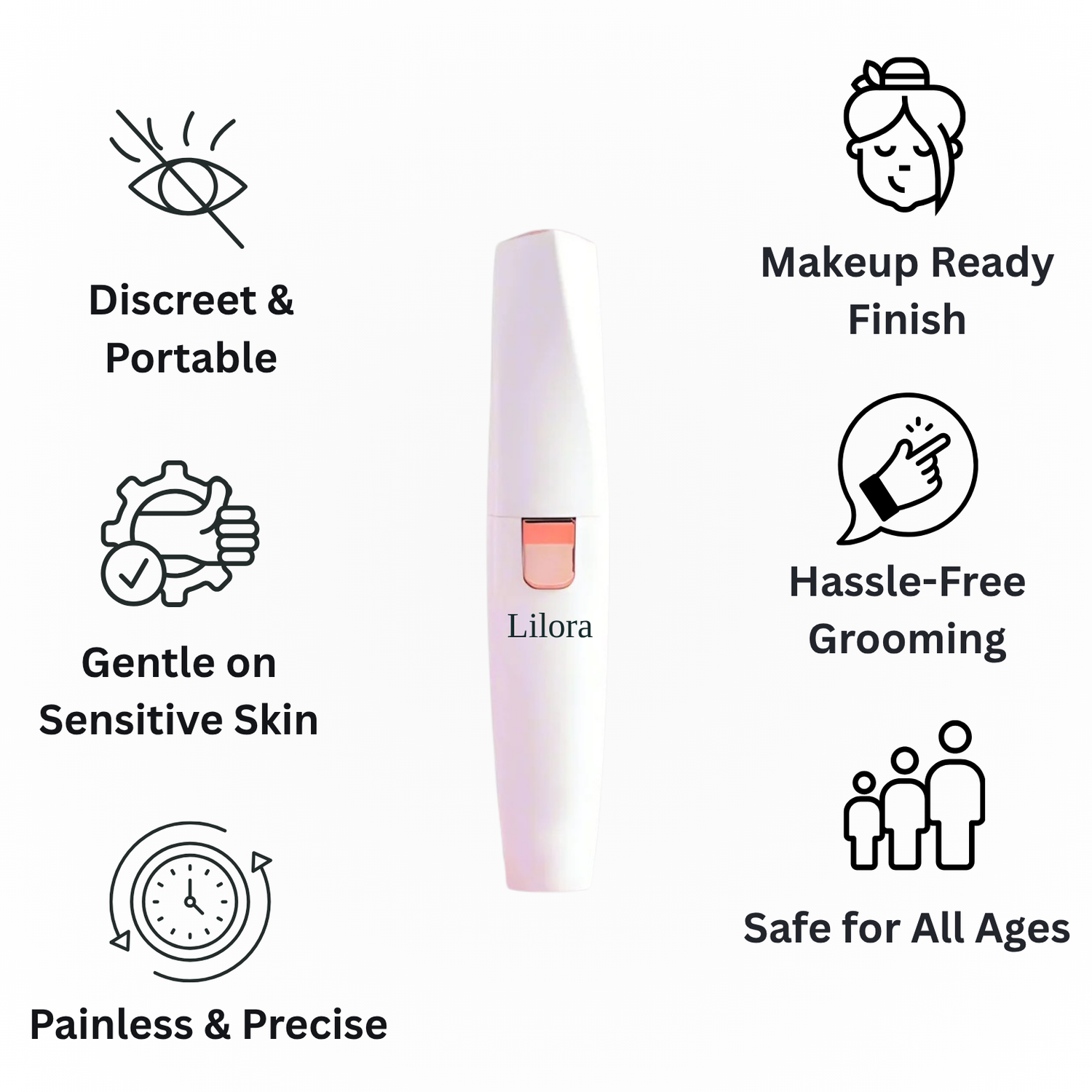 Lilora’s GlowTrim™ is a sleek, lipstick-sized facial hair trimmer designed for women who want smooth, radiant skin — anytime, anywhere. Painless, rechargeable, and safe for sensitive skin, it’s your go-to beauty tool for effortless grooming on the go.