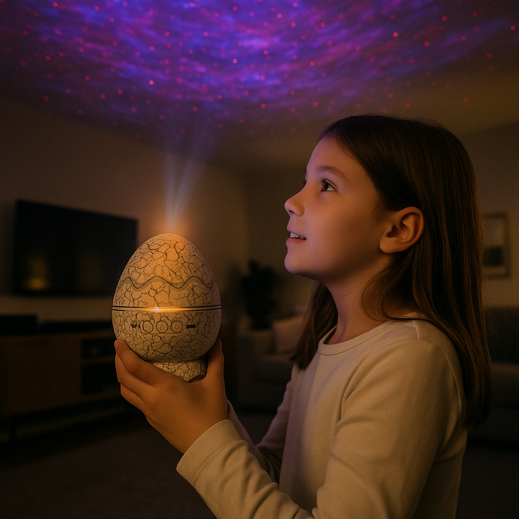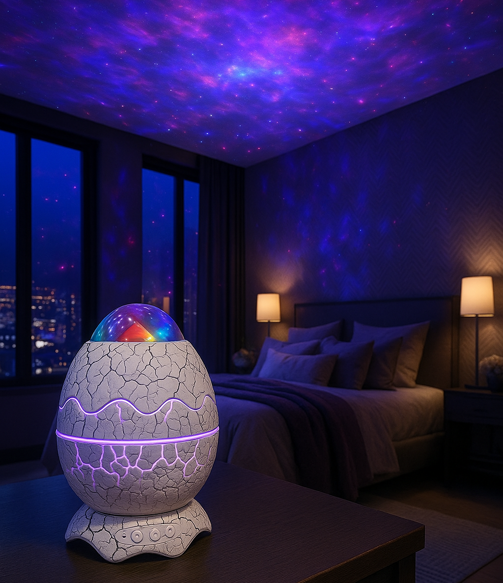 The Dino Egg Galaxy Projector is more than a lamp it’s a bedtime revolution wrapped in wonder. Hatch the egg to release swirling nebula clouds and glowing stars that move gently across your walls and ceiling. Whether it’s a baby who needs white noise, a child enchanted by dinosaurs, or a teen decorating their space — this egg has it all. It’s the perfect mix of fun, function, and family bonding.